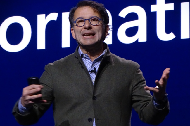 Judson Althoff, directeur commercial de Microsof, a multiplié sur scène les démonstrations des dernières évolutions de M365. (Crédit JC)